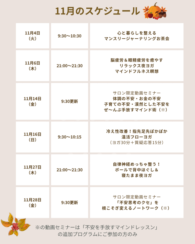 セルフケアサロンMintyの11月コンテンツ・スケジュールのご案内